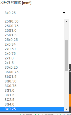 | 芯数及截面积 [mm²] | 3x0.25 |